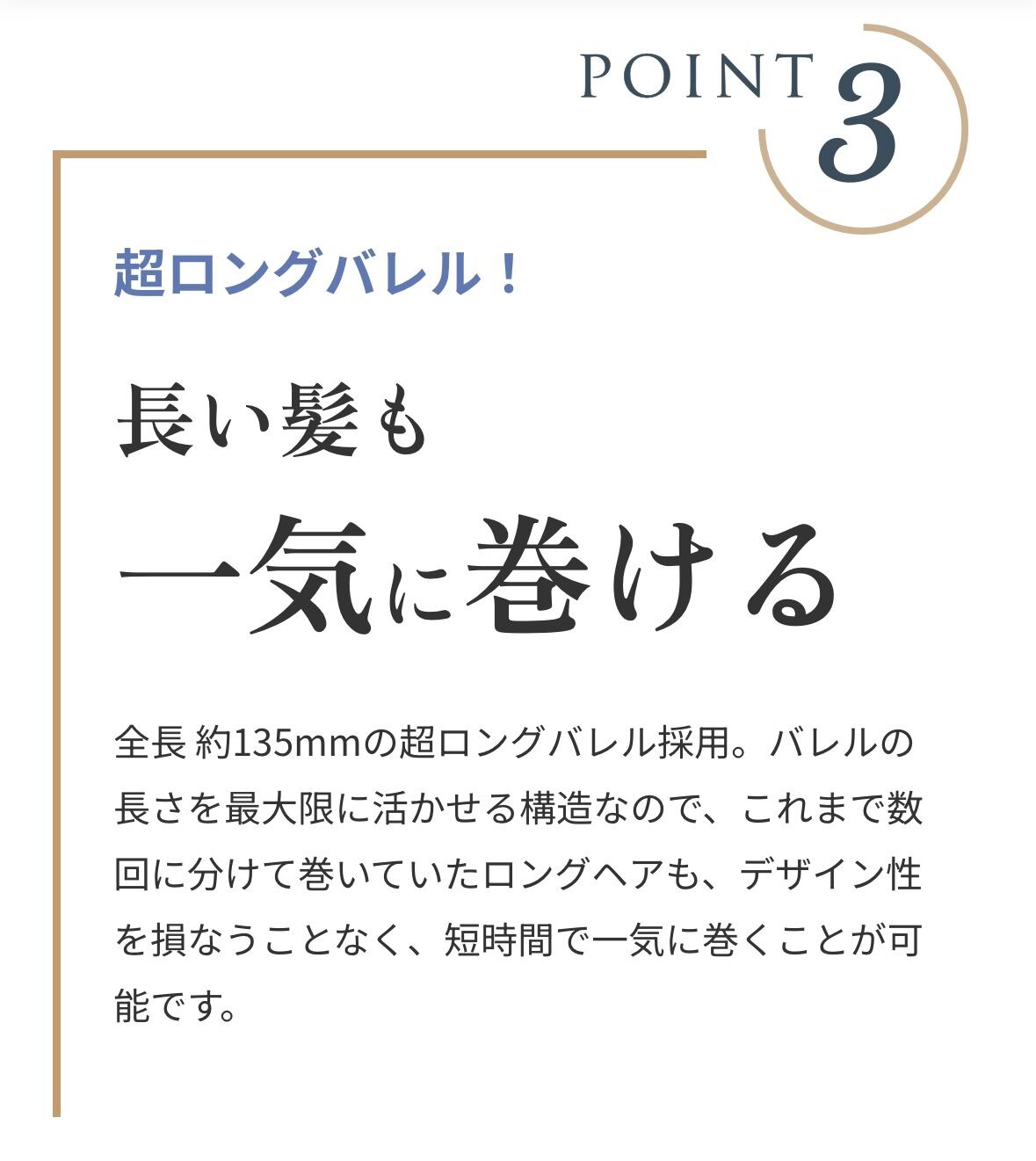 全長135mmの超ロングバレルの組み合わせで、うるツヤ髪を実現。
